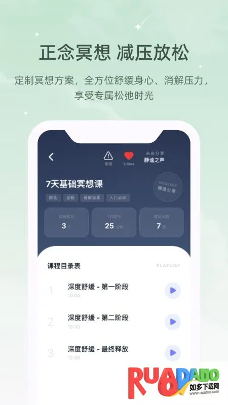 3. 能帮助用户迅速解压,适配不同人群,还有专业冥想引导和声音疗愈。