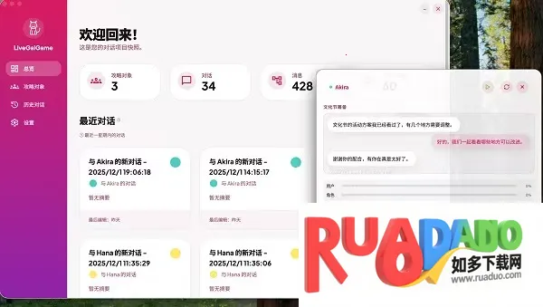 1. 提供丰富对话内容,能体验真实恋爱过程,随时可聊天。