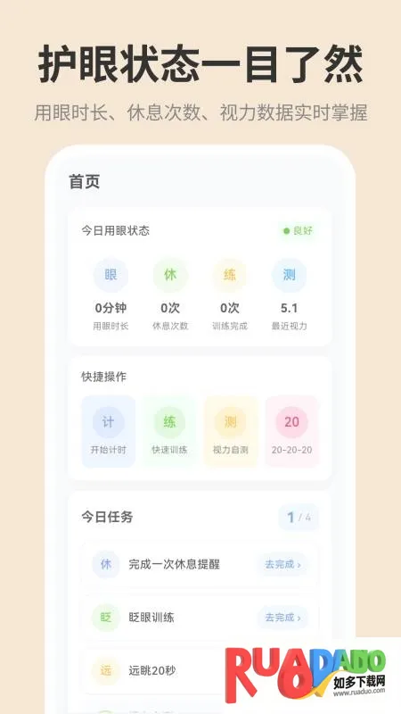3.设有眼球专业放松训练,每天提醒完成护眼任务。