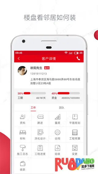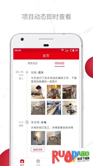 2. 支持随时查看商务动态以及项目动态,能快速看到验收详情、户主信息等。