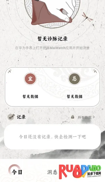 2、进入软件今日页面,带上华为手表即可开始诊脉