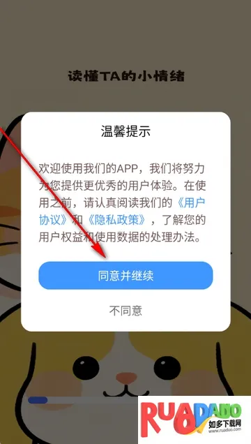 1、打开猫狗翻译工具app,点击同意隐私政策