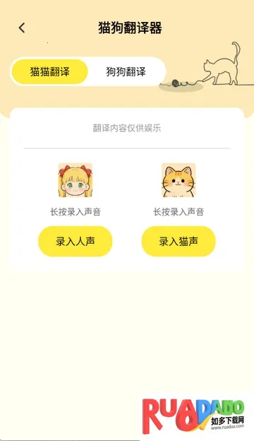 3. 提供狗狗与猫咪语言翻译功能,还有多种声音类型。