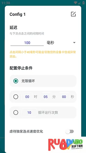 2. 自定义参数丰富全面,可灵活设置点击频率、时长、次数与循环模式。