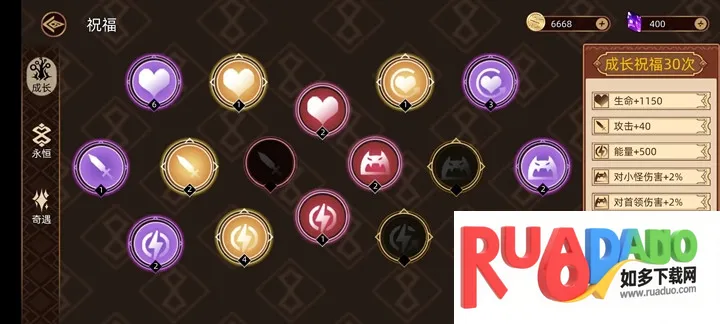 - 3、天赋多样组合,独有、叠加、套装天赋多重搭配,打造爽快成长体验。