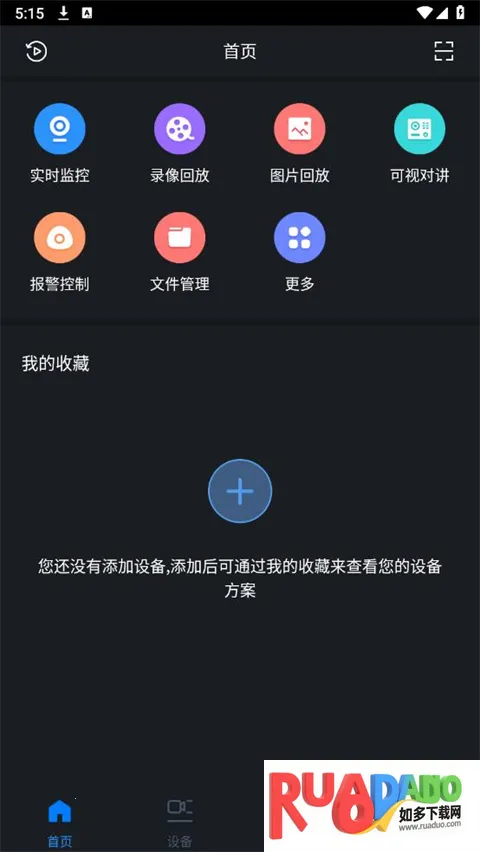 2、来到首页点击下方【+】号添加设备,成功添加后可以在【我的收藏】查看自己的设备方案,或者直接点击下放第二个【设备】也可以。
