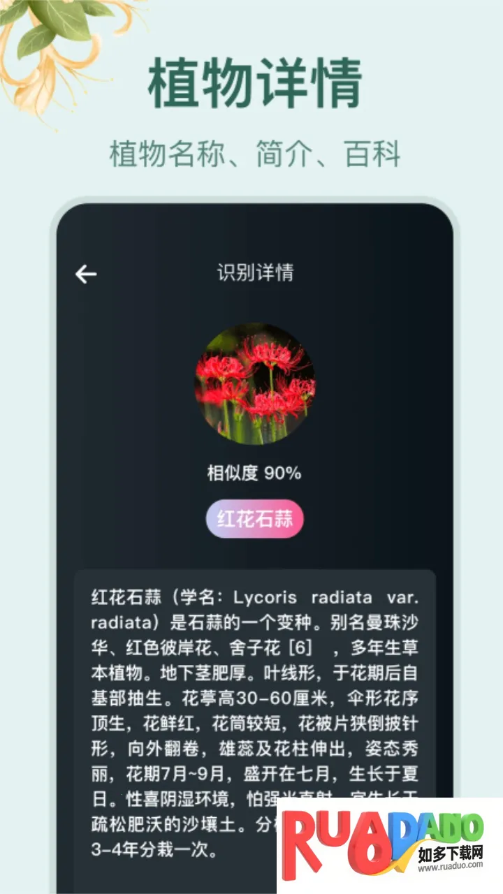 小园丁童装相关的工具能帮您轻松解决识别植物的难题。它可以通过拍摄或者上传植物图片,快速准确地识别出各种植物,包括多肉、花草、蔬菜水果等多种类型,满足您的使用需求。软件拥有先进的图像处理技术,精准识植物,1秒就知道植物名字和故事,还能提供详细的植物信息和养护建议,让您掌握所有植物的生活习性和护理知识,更好地了解植物,提升养殖技巧。识别记录会自动保存至历史记录,方便您随时查看。其界面设计简洁直观,功能分类清晰,新手也能快速上手。软件运行稳定,几乎不会出现卡顿或闪退现象,体积小巧不占太多存储空间,也不会影响运行效率。有了它,种植花草变得更简单,从此您可以轻松开启植物探索之旅,享受种植的乐趣。