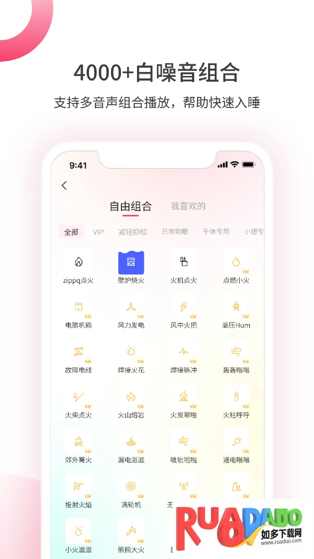 1. 提供各种自然声音,可选择喜欢的循环播放辅助睡眠。