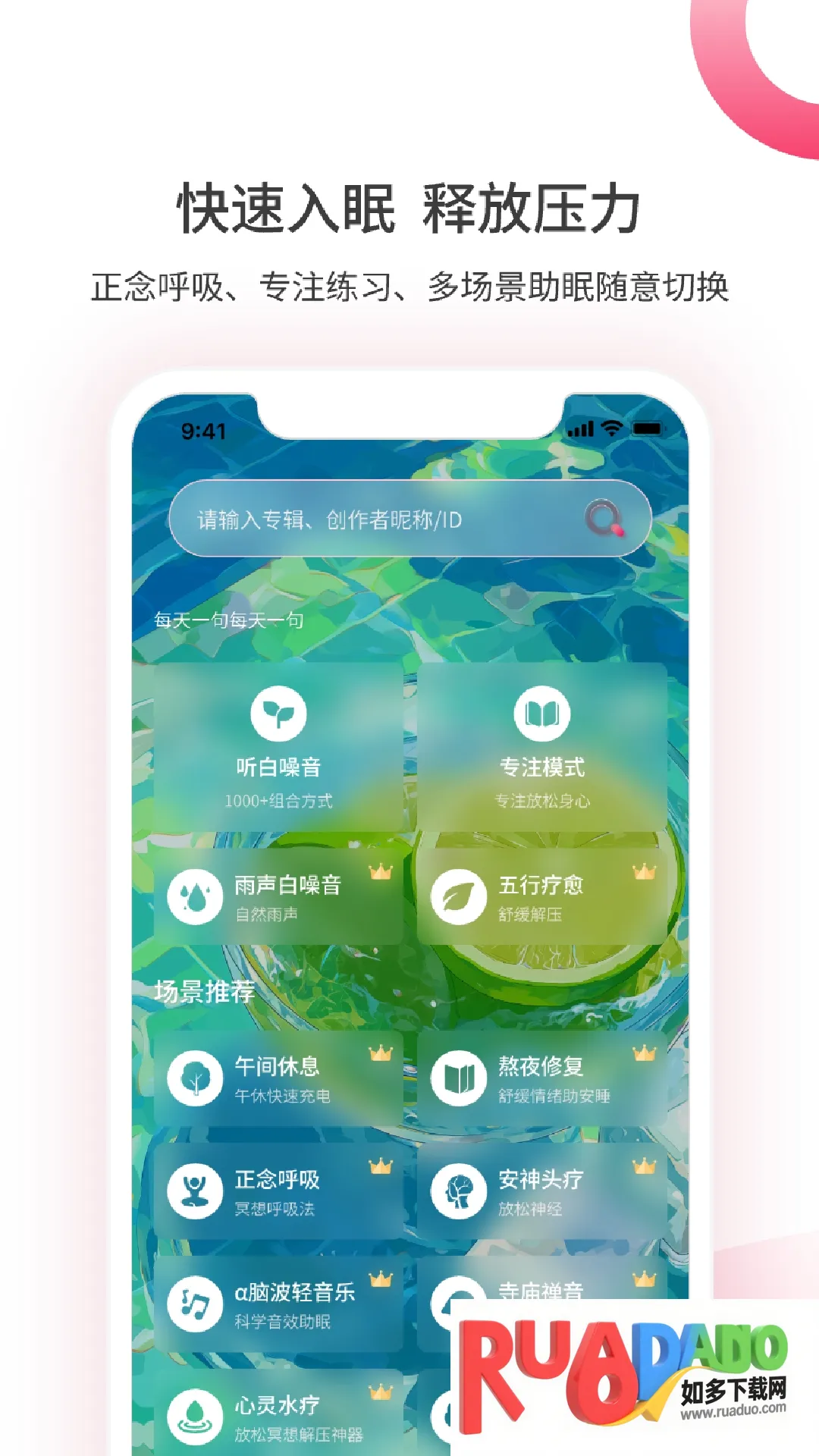 2. 提供各种自然声音,支持多种循环播放模式,辅助用户睡眠。