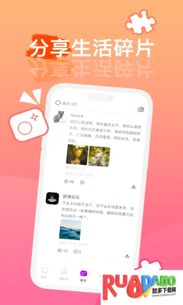 1. 用户能分享文字、图片、视频、链接等多种内容,还支持点赞、评论与转发。