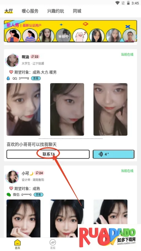 1、到达首页后你可以选择你感兴趣的对象;