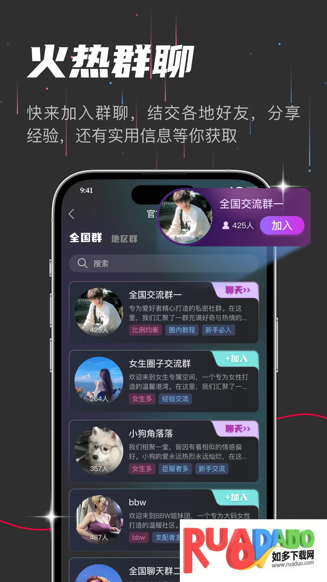 2. 可依据兴趣加入各异社交圈子,与志同道合者交流分享。
