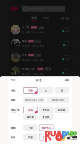 2. 在线筛选:可按性别、年龄、距离等条件筛选友人。