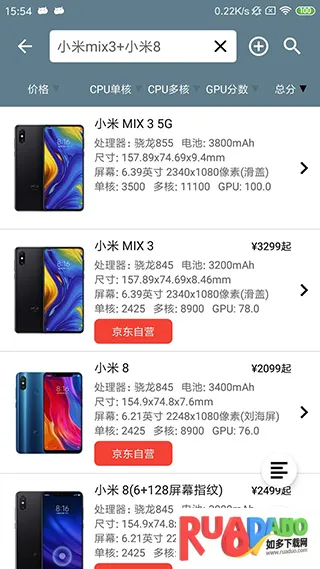 4. 支持搜索查询手机和处理器相关分数排行及功耗,可升序降序排列 。