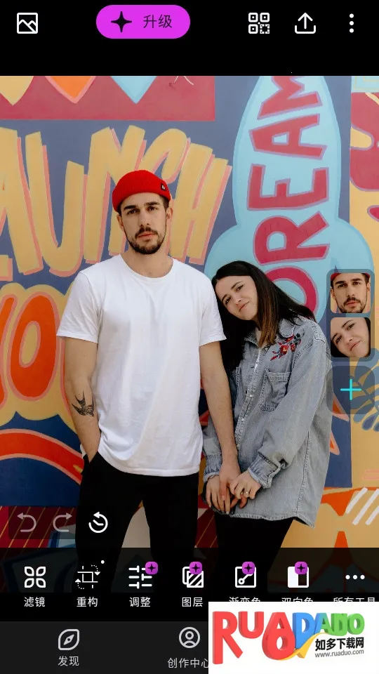 2. 拥有丰富工具,如自动增强、图像滤镜、图层混合等。