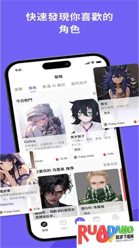 1、海量AI角色可选,二次元动漫角色和真人虚拟角色等任你挑,还能自己动手设计独一无二的虚拟伙伴,定制性格和聊天习惯。