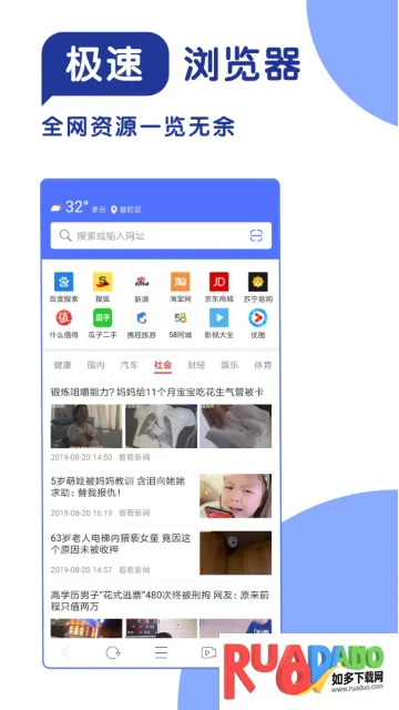 2. 内置超多热门网络资讯,浏览最新新闻。