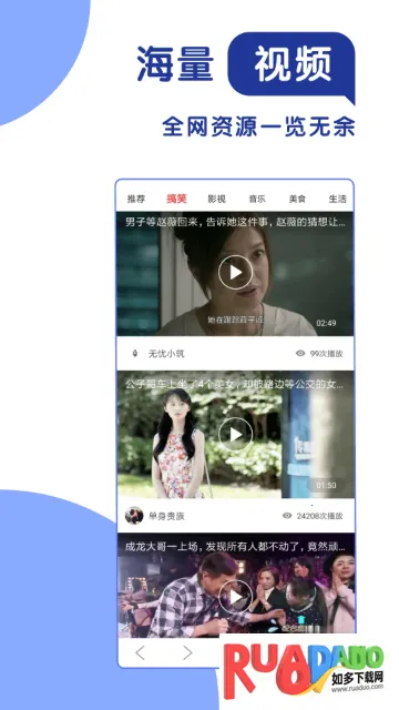 3. 在打开短视频模式之后,你就可以在软件里浏览许多精品短视频内容。