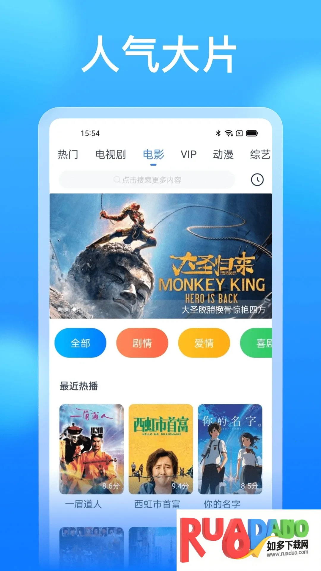 3. 具备智能搜索与推荐系统,输入关键词可精准定位影片,还能根据观影习惯推送感兴趣内容,解决片荒问题。