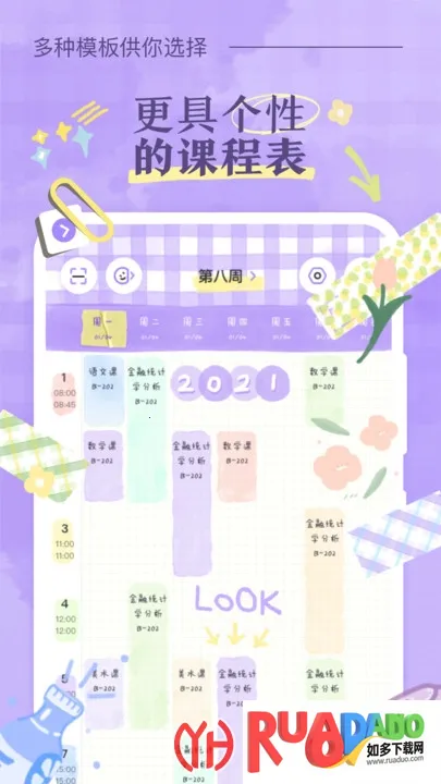 1. 可制作专属课程表,模板贴纸能任意装扮,支持多所高校一键导入,手动添加也便捷。