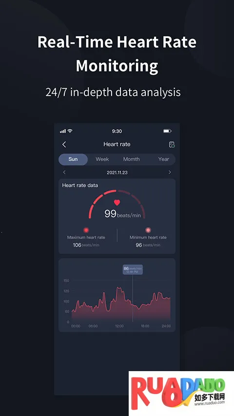 4. 图表生成,可实时获取运动心率及睡眠图标与报告。
