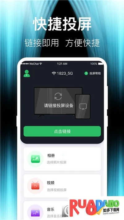 4、具备多种投屏功能,支持多种连接方式,如手机扫码投屏、投屏码投屏、同WiFi搜索投屏等。电视TV投屏神器是一款不错的手机投屏追剧工具,能让你轻松享受大屏追剧的惬意时光,不管是在家还是在其他地方,都能方便地将手机内容投屏到电视上,而且操作简单,功能丰富,适配性广泛,能给用户带来良好的使用体验。