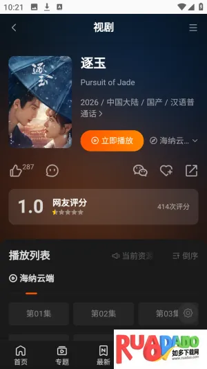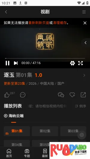 海纳TV是无广告免费的影视播放平台,整合丰富影视资源,操作便捷。支持一站式搜索播放与缓存,覆盖多种类型。可智能调节清晰度,有倍速等实用功能,界面简洁,还能轻松投屏,是追剧好帮手。