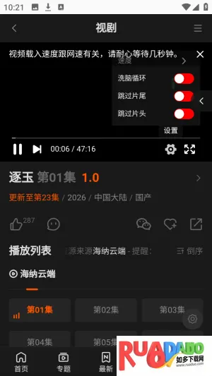3. 软件可根据网络环境智能调节1080P蓝光4K等清晰度,搭配倍速播放跳过片头片尾等实用功能,大幅提升观看体验。