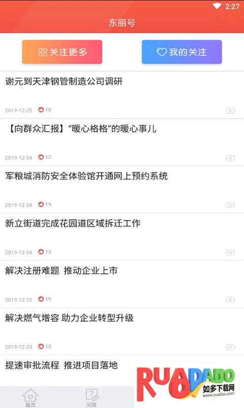 4、软件功能多样,如东丽号版块与区内公众号对接,首页有多个频道,服务版块分类明确,融媒版块依托资源优势提供丰富内容,还有政务信息发布与办理等功能,不断优化提升用户体验。