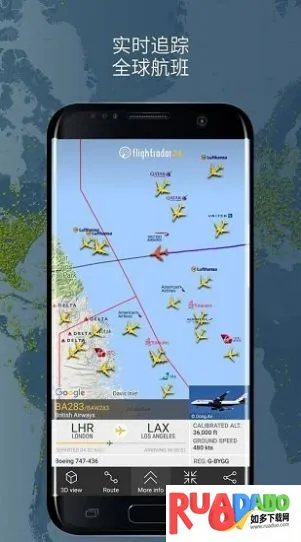 Flightradar24是全球航班实时追踪软件,能展示天上飞机,提供航线回放、航班状态通知。支持线上订票,界面简洁,操作易用,靠2万多地面站保障数据传输,每日追踪超25万架次航班,服务500万活跃用户。