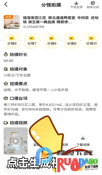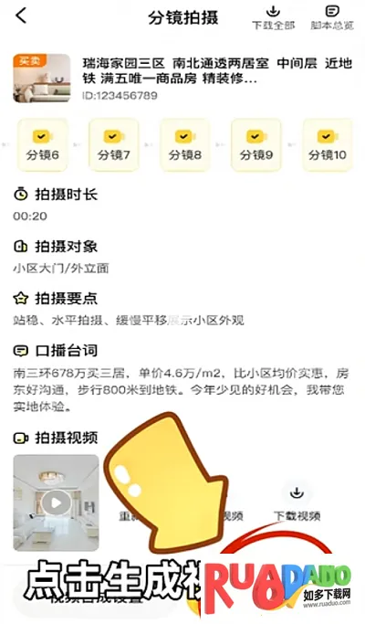 5、按照上方的核心卖点台词配合视频画面来介绍房屋