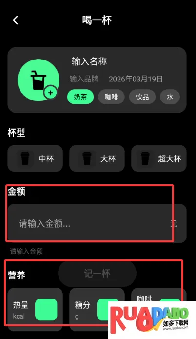 2、记录自己喝的咖啡金额、热量