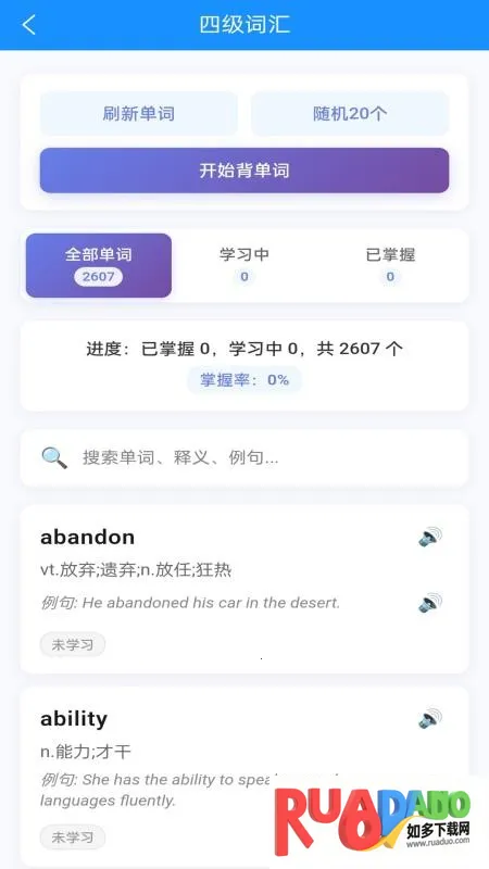2. 每个单词都带有精准中文翻译,便于快速了解释义,高效背诵。