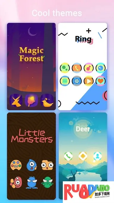 3. 兼容Android4.1及以上系统,内置500余款精美主题、1000多张高清壁纸,支持单个应用图标自定义。