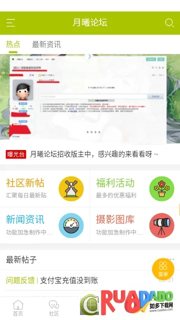 月曦论坛是二次元交流平台,为用户提供漫画、小说等资源及交流空间。资源全,能满足多样需求,还有新闻资讯与福利活动。页面清爽,操作便捷,通过大数据推荐,助用户轻松找到喜爱的二次元内容,结识同好。
