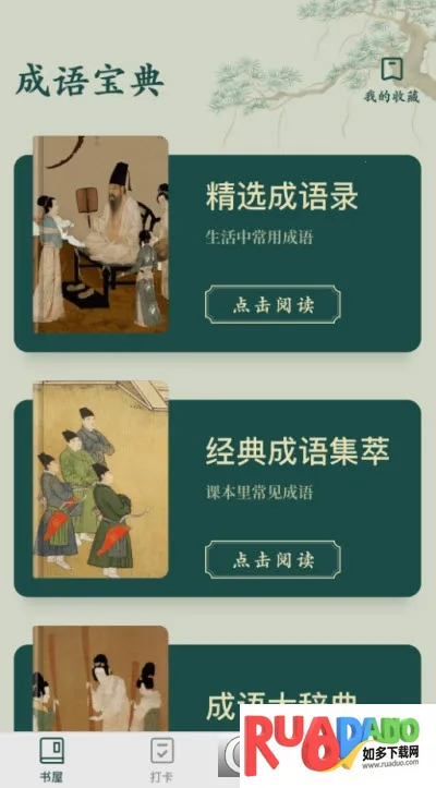成语书屋优势众多。它收录海量成语词条,释义出处等详细内容能满足多样学习需求。科学算法智能推送复习,助用户高效巩固知识。界面简约操作流畅,带来愉悦学习感受。创新性游戏让图形识别与成语记忆结合,充满趣味,能很好地帮助人们学习成语,提升语言表达与文化素养。