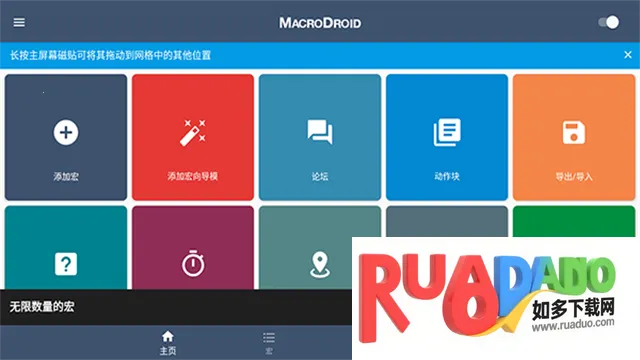 1、从MacroDroid主屏幕选择“宏”。