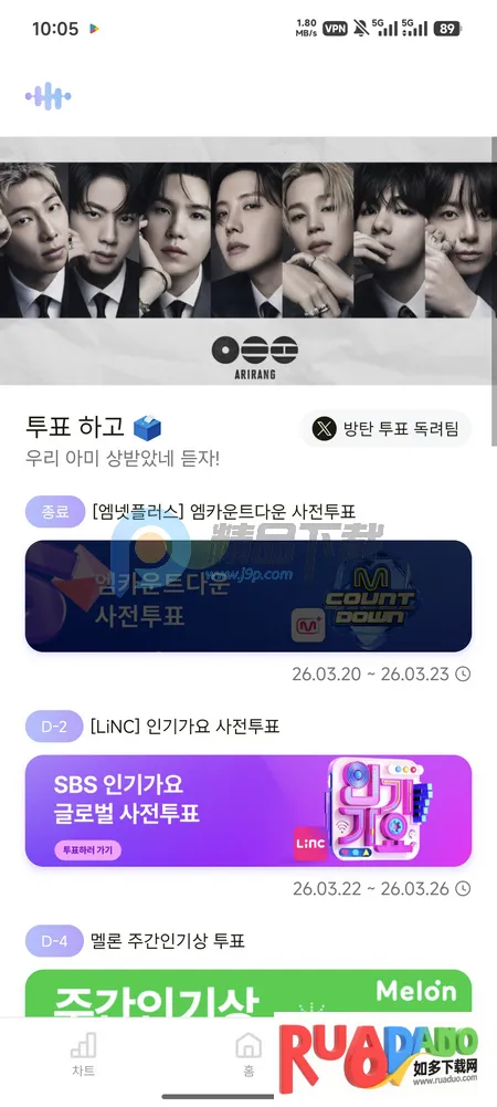 4. 提供BTS实时榜单,还有回归活动和投票日程实时通知,不错过重要时刻,集中管理投票信息,轻松跳转投票链接。