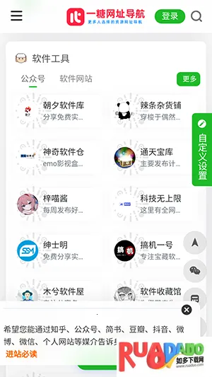 一糖导航是一款超棒的网址导航工具。它能解决你找资源麻烦的问题,各类资源免费下载使用。功能超强大,在多个操作系统都能运行,像Windows、Mac、Android等,还能同步浏览器数据。内置高效搜索引擎,直接在搜索栏输关键词就能搜,省了打开搜索引擎网站的时间。点击网站图标就能直达相应网站,不用繁琐输入网址。能个性化定制导航页面,把常用网站添加到收藏夹方便随时访问。还能自行添加网址分类、收藏常用网站、调整网址分类排序等。使用时,先下载安装,进入后能看到各种分类网址,点击分类或在搜索框输关键词找网址,点链接就跳转。想收藏就点爱心图标。它还有二维码生成、短网址生成等实用工具,让你轻松满足各种需求,超方便!