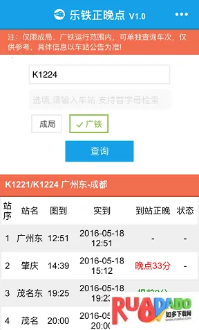 2、支持查询成都铁路局当日车次运行情况,跨日列车次日可查。