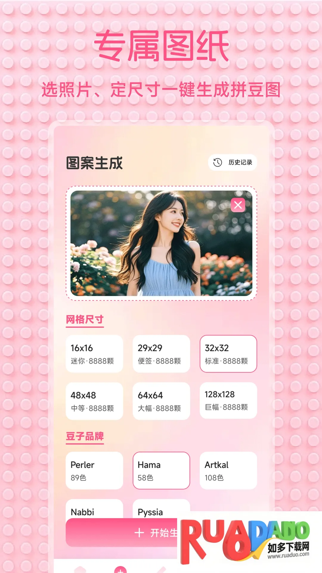 2. 图片转图纸可以将任意上传图片,转化为适配拼豆颗粒布局的像素化图纸。