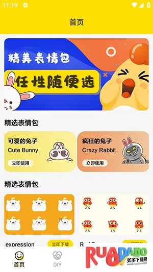 兔子表情包 2026 官方正版是为喜爱表情包素材用户打造的制作软件。有海量素材,能制作动静态表情,操作易上手。可随意选好看表情包,自定义贴纸,智能剪辑,无水印,还能欢乐斗图,方便日常聊天等。