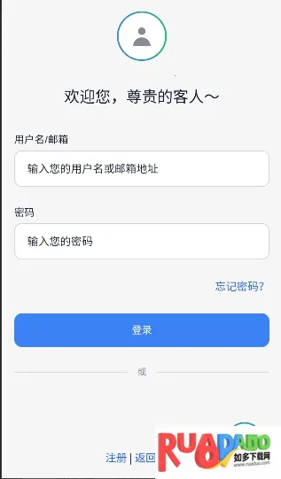 2、打开进入软件,输入用户名或邮箱以及密码即可登录,没有账号点击下方注册