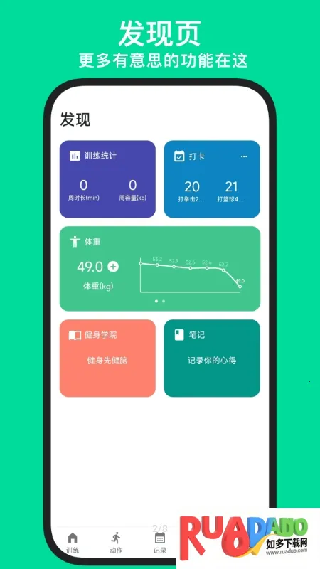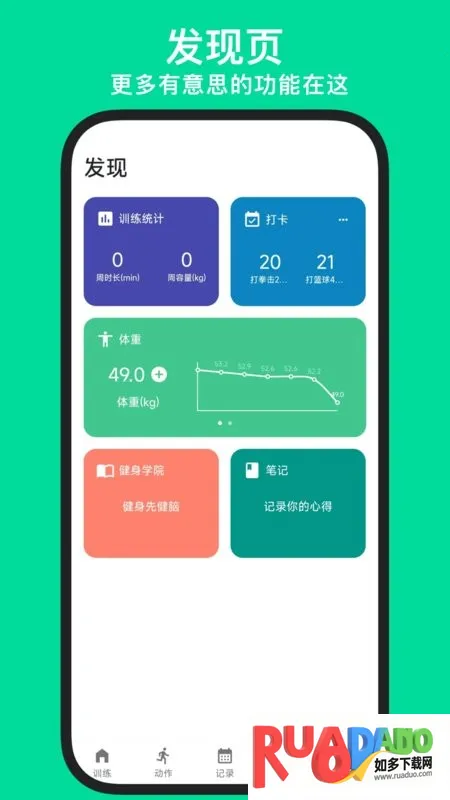 4. 可记录训练心得笔记,形成个人知识系统,还能打卡健身习惯,保持训练动力。