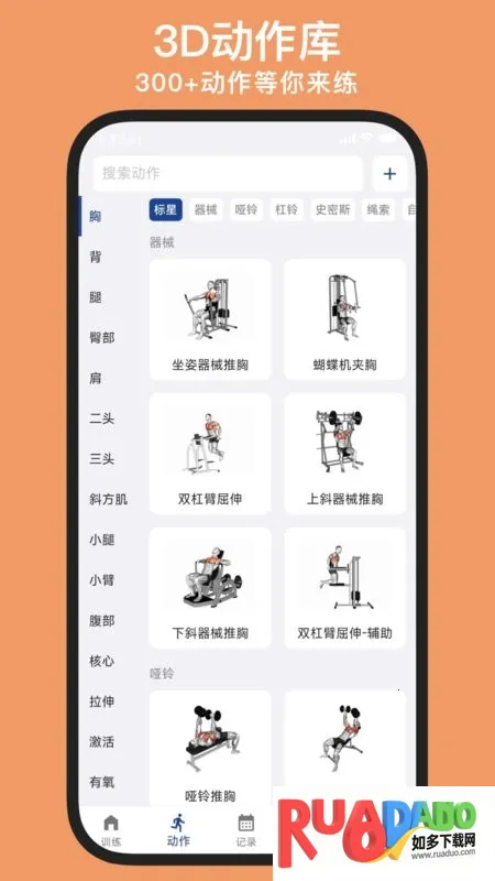 1. 拥有丰富动作库,超300种动作任你练,每个动作都配有视频演示和文字说明,让训练轻松上手。