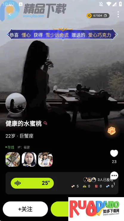 如果你想知道呼叫小狗的声音怎么写,在这里能找到相关帮助哦。就拿呼叫小狗App来说,它有个专属铃铛召唤功能,用户可设置个性化铃铛音效,通过摇动手机触发专属召唤信号,快速连接匹配的陪伴伙伴,实现即时互动与情感回应。这就像是能让你轻松找到“呼叫小狗声音”的一种方式呀。它还能帮你解决社交中想建立深度信任关系的问题,支持匿名倾诉与角色切换,打造安全私密的社交环境。心域对话模式提供匿名倾诉空间,支持语音文字双通道交流,搭配情绪识别技术智能匹配共鸣话题,让交流更顺畅。灵魂契约系统基于用户兴趣图谱与行为数据生成隐藏属性标签,通过算法匹配建立长期陪伴关系。总之,能给你带来很多便利,让你在社交中更轻松地找到乐趣,还能满足你对呼叫小狗声音相关的探索需求呢。