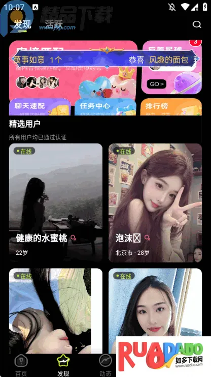 3、发现页面中可以查看推荐用户