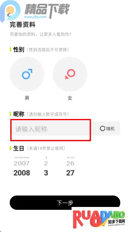 4、点击完善资料