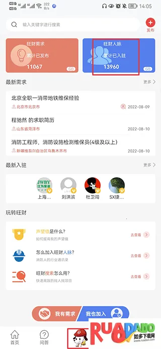 一、打开app,点击小狗图标进入旺财界面后,点击旺财人脉