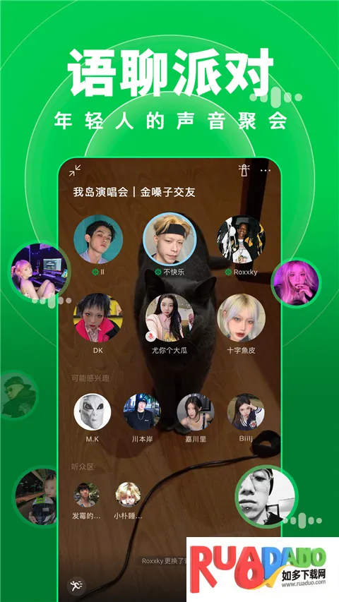 3. 开设环岛漫游、主题语聊、岛上FM等特色功能,还能探索不同板块青年文化社区,参与年轻人的声音聚会,聆听真实岛民分享的音乐。